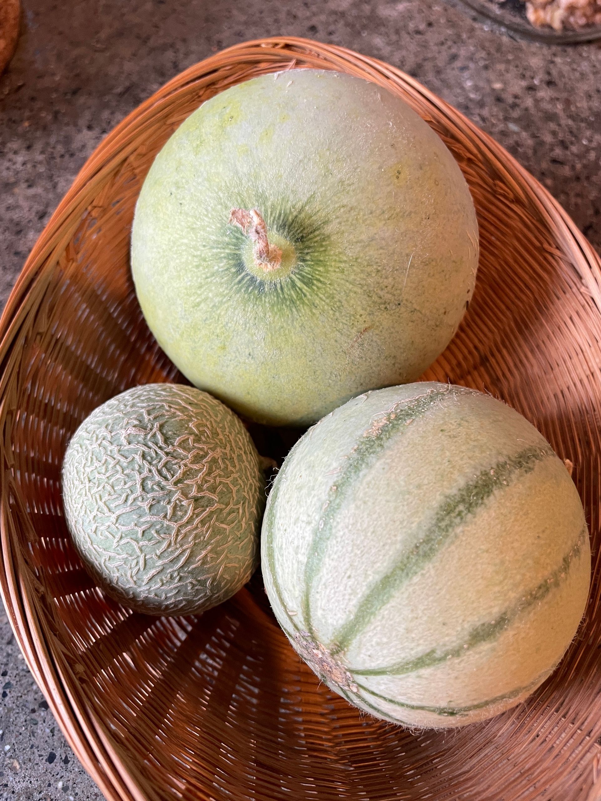 ![]() Ripening butternut squash ![]() Cherry tomatoes | ![]() Elecampane: cough medicine ![]() Tiny melons, perhaps never to ripen | ![]() Adorable delicatas ![]() Maya bush beans |