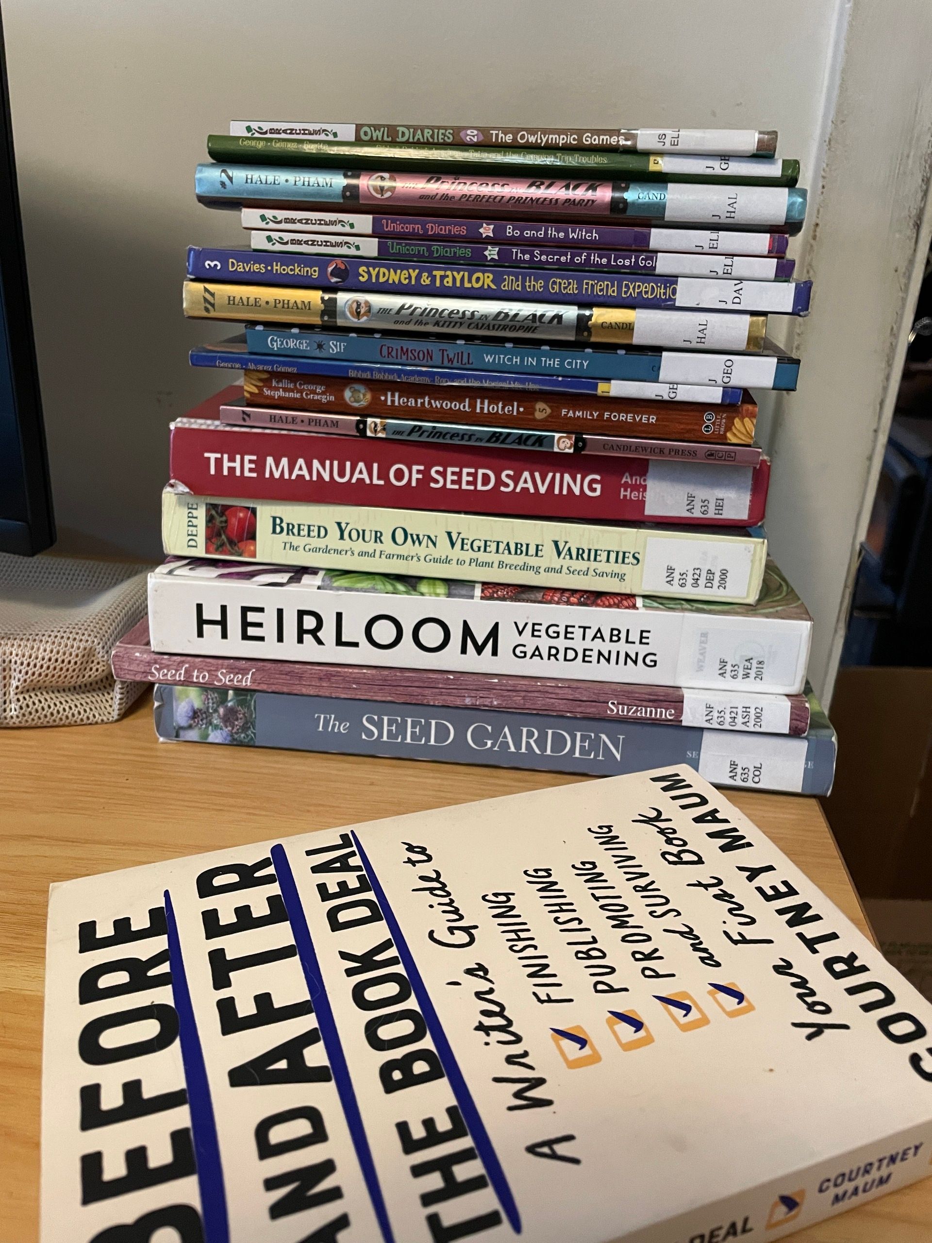 ![]() Flowering Plant Families of the World | ![]() Two New Years; Our Little Kitchen; and Thank You, Omu | ![]() Chapter books, books on seed saving and a writing career guide. |